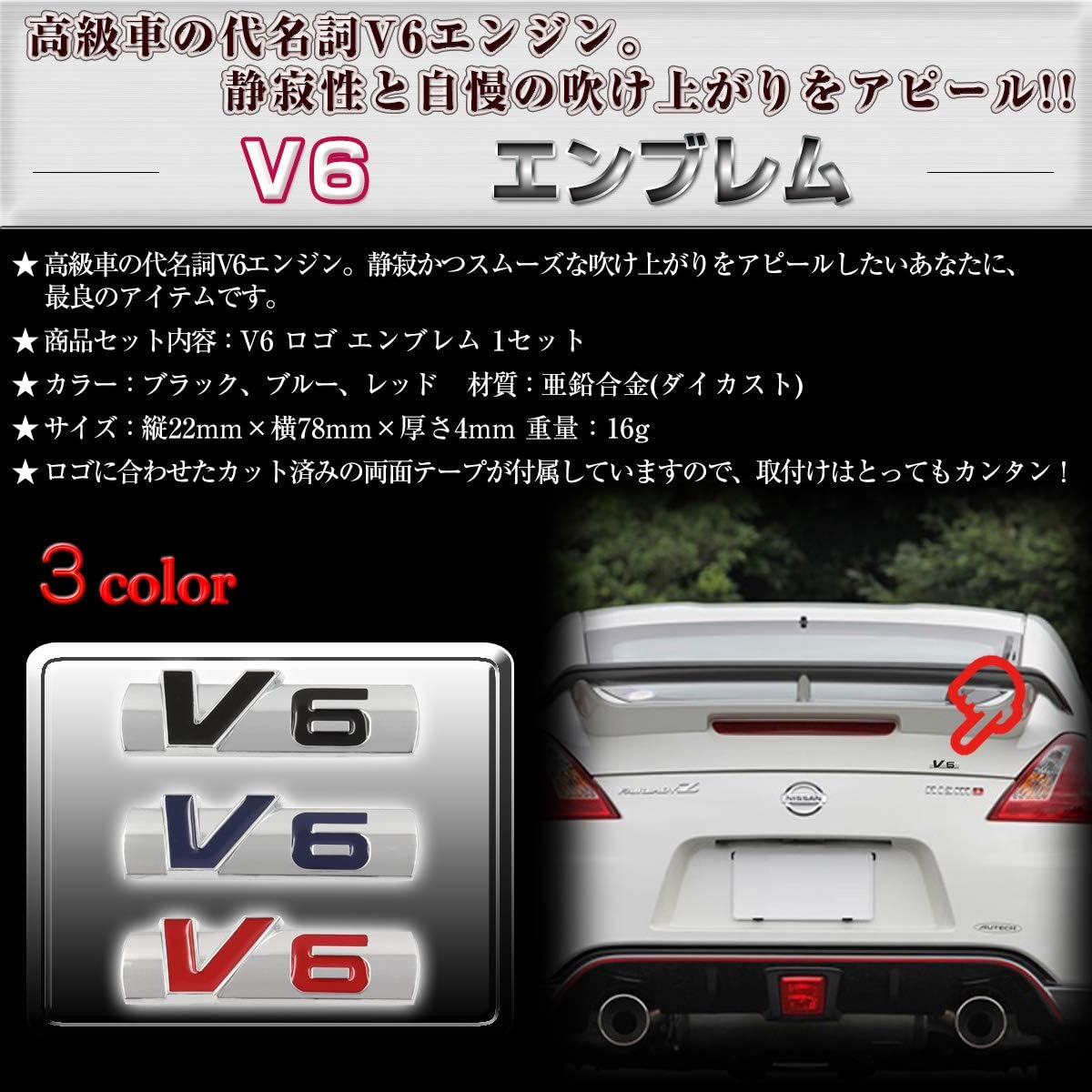 Amazon Negesu ネグエス V6 ブイロク エンブレム 立体ステッカー エンブレム 車 バイク